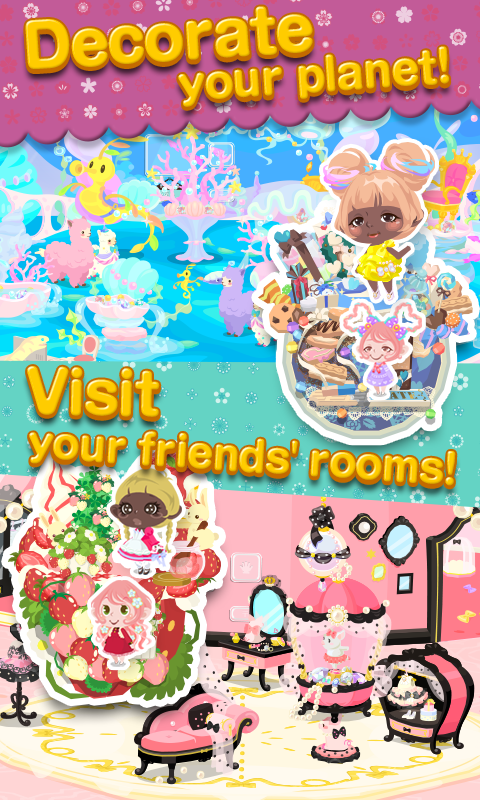 Você pode decorar seu planeta e visitar outros planetas também.